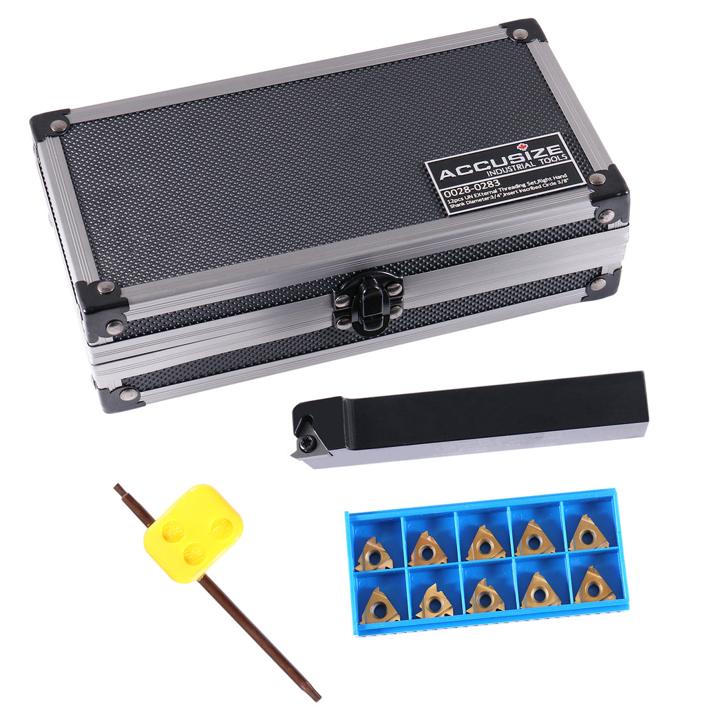 12 pc UN Threading Set, 3/4" Shank, Indexable Thread Tool Set, Right Hand, with 10 pc Tin Coating Threading Inserts