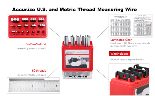 Select the proper wire size for either the number of threads per inch (US) or thread pitch (Metric)Metric