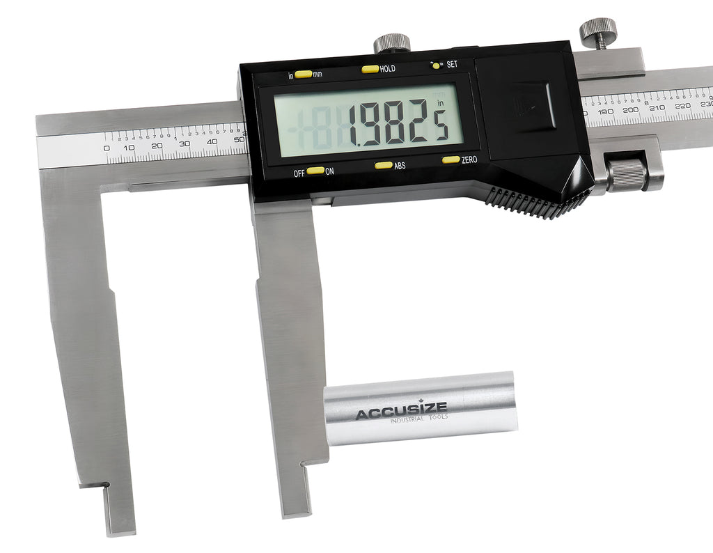 Those calipers can be used to measure inside dimensions. However, it is important to note that the user needs to perform compensation for the indicated value. The width of the two small measuring faces is provided as T1 in the table above.