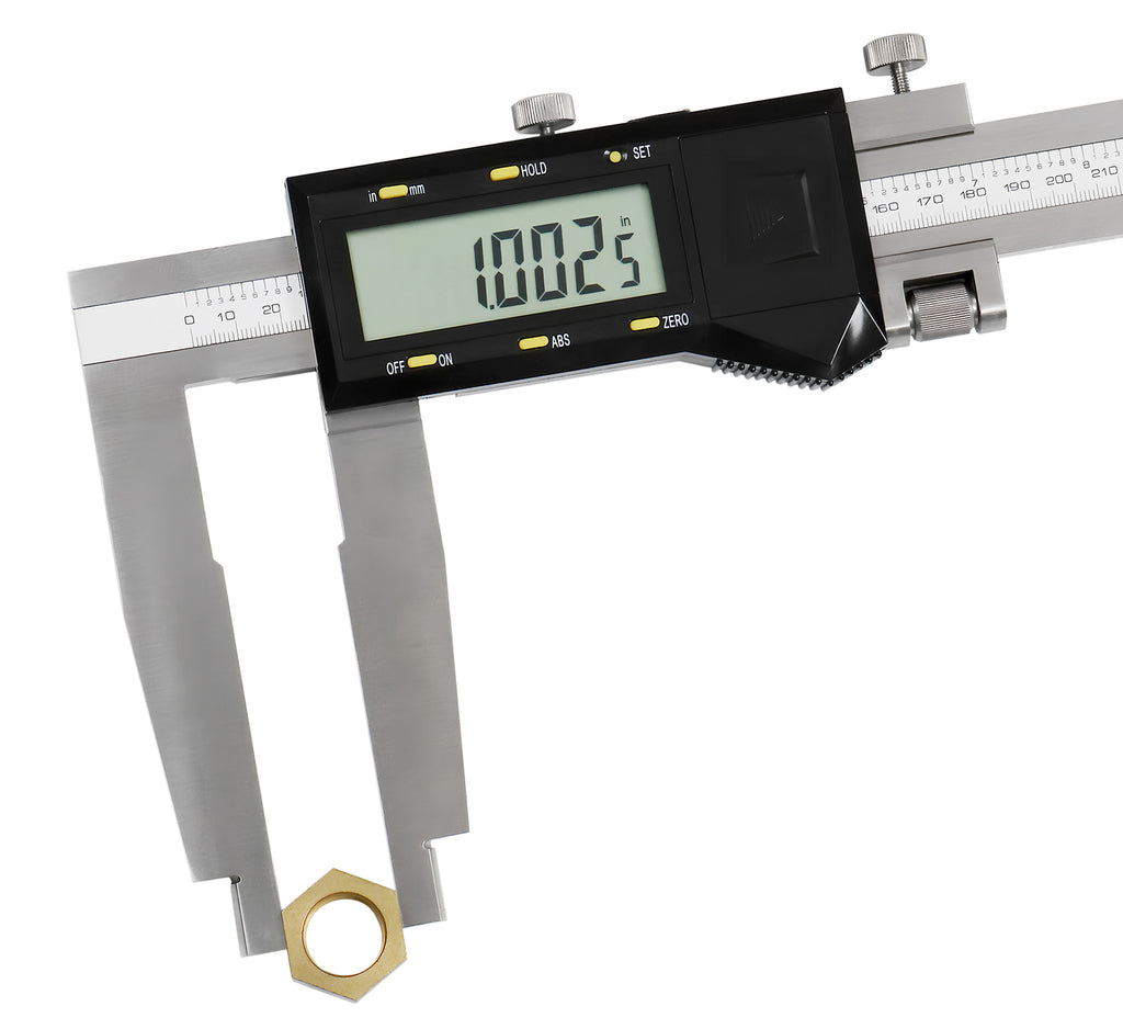 - Next, place the caliper inside the object you want to measure and expand the jaws until they touch the inner walls.