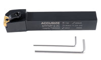 Each set consists of one Wedge type tool post and one of each of 5 tool holders: