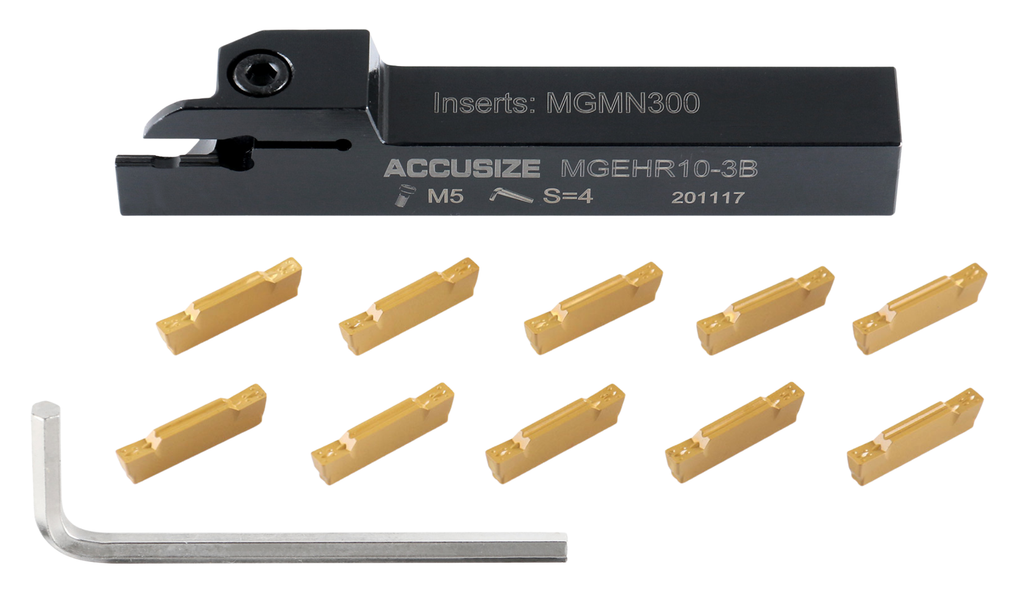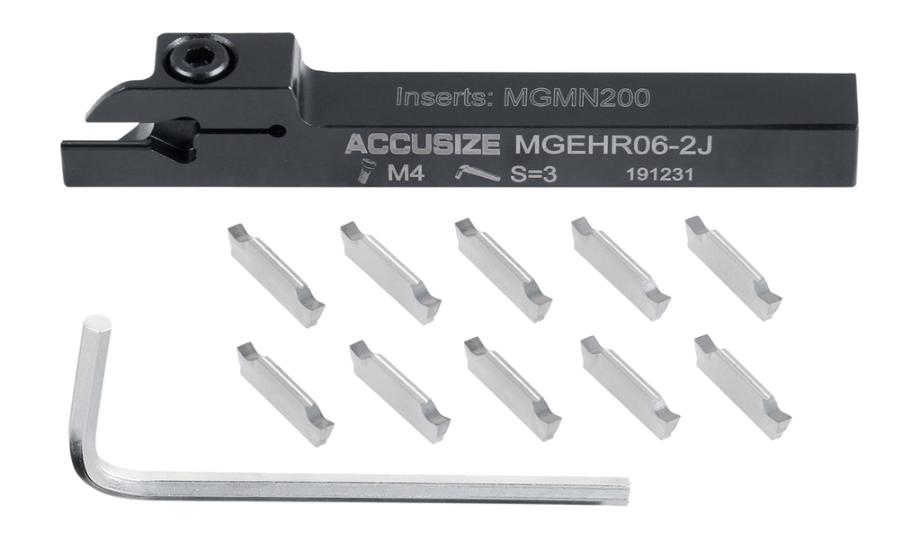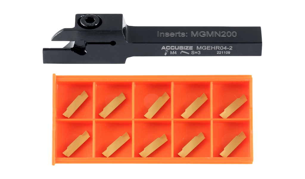 (D)Insert SKU(Insert Not Included) 2387-2001 1/4" MGEHR04-2 1/4" x 3/8" 3" MGMN200 M4 x 10 0.383" 0.295" 0.079" 0.295" TiN Coated MGMN200, 2403-4022 2387-2003 3/8" MGEHR06-2J 3/8" x 3/8" 3-1/2" MGMN200 M4 x 10 0.383" 0.295" 0.079" 0.295" 2387-2004 1/2" MGEHR08-2J 1/2" x 1/2" 3-1/2" MGMN200 M4 x 10 0.508" 0.433" 0.079" 0.433" 2387-2005 5/8" MGEHR10-3B 5/8" x 5/8" 4-1/2" MGMN300 M5 x 12 0.637" 0.512" 0.118" 0.512" TiN Coated MGMN300, 2403-4026 2387-2006 3/4" MGEHR12-3B 3/4" x 3/4" 4-1/2" MGMN300 M5 x 14 0.762" 0.689" 0.118" 0.689"