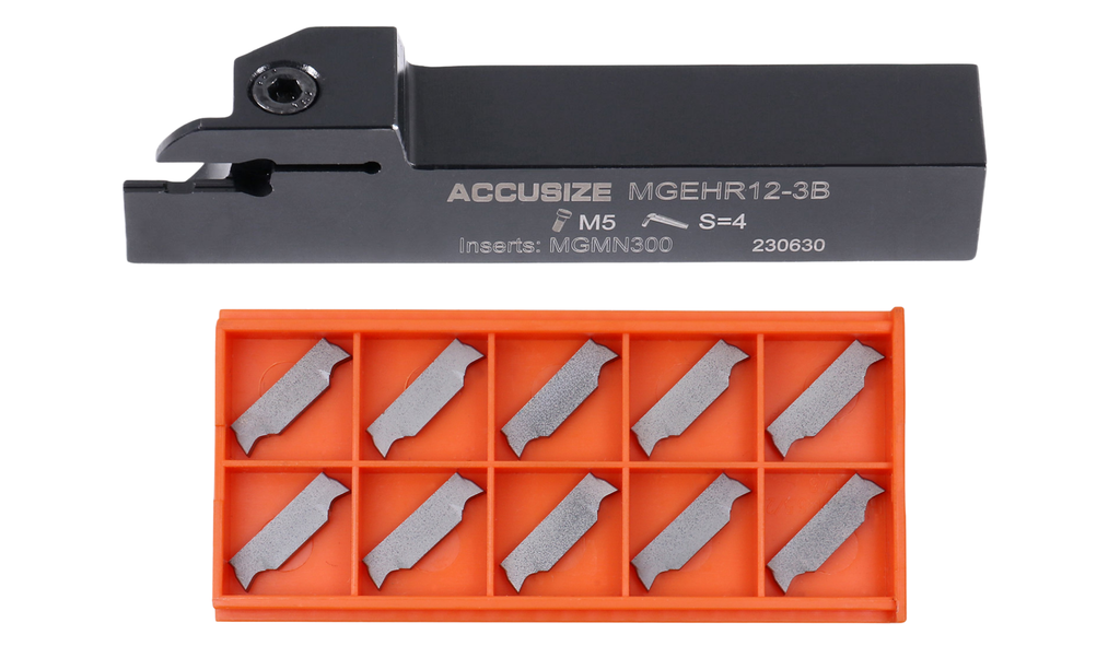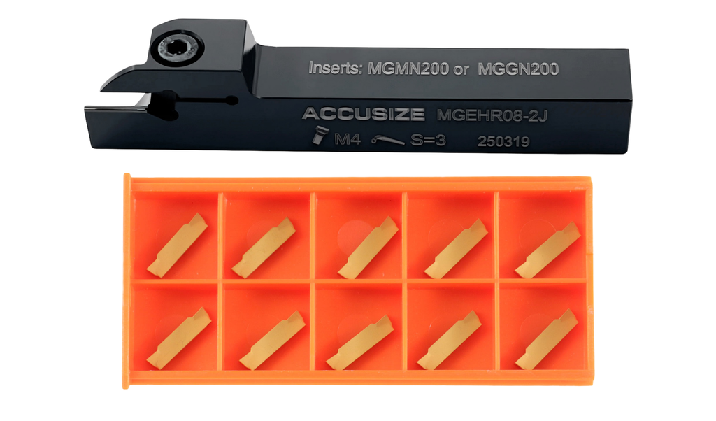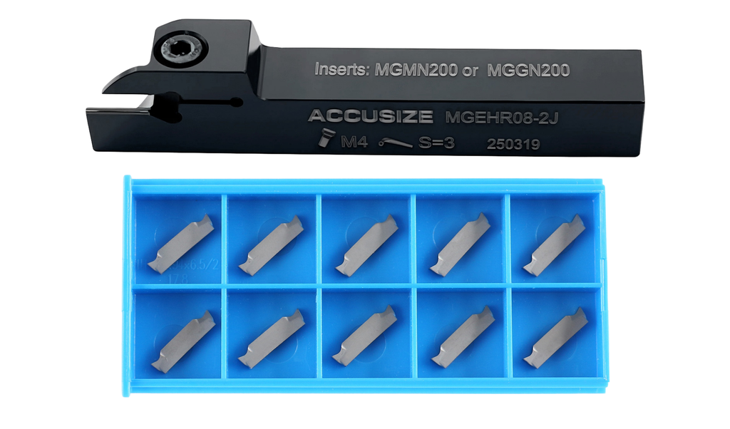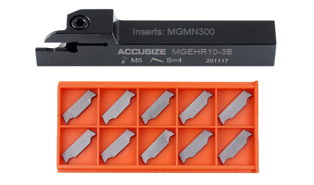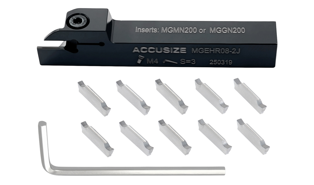 SKU Holder Size Tool Holder Insert Code Insert SKU Machining Materials 2387-0001INS 1/4" x 3/8'' MGEHR04-2 MGMN200 2403-4022 Steel 2387-0003INS 3/8'' x 3/8" MGEHR06-2J MGMN200 2403-4022 Steel 2387-0003INSA 3/8'' x 3/8" MGEHR06-2J MGGN200-LH 2403-4023 Aluminum 2387-0004INS 1/2" x 1/2" MGEHR08-2J MGMN200 2403-4022 Steel 2387-0004INSA 1/2" x 1/2" MGEHR08-2J MGGN200-LH 2403-4023 Aluminum 2387-0005INS 5/8" x 5/8" MGEHR10-3B MGMN300 2403-4026 Steel 2387-0005INSA 5/8" x 5/8" MGEHR10-3B MGGN300-LH 2403-4027 Aluminum 2387-0006INS 3/4" x 3/4" MGEHR12-3B MGMN300 2403-4026 Steel 2387-0006INSA 3/4" x 3/4" MGEHR12-3B MGGN300-LH 2403-4027 Aluminum Please note the cutting parameters are for reference only