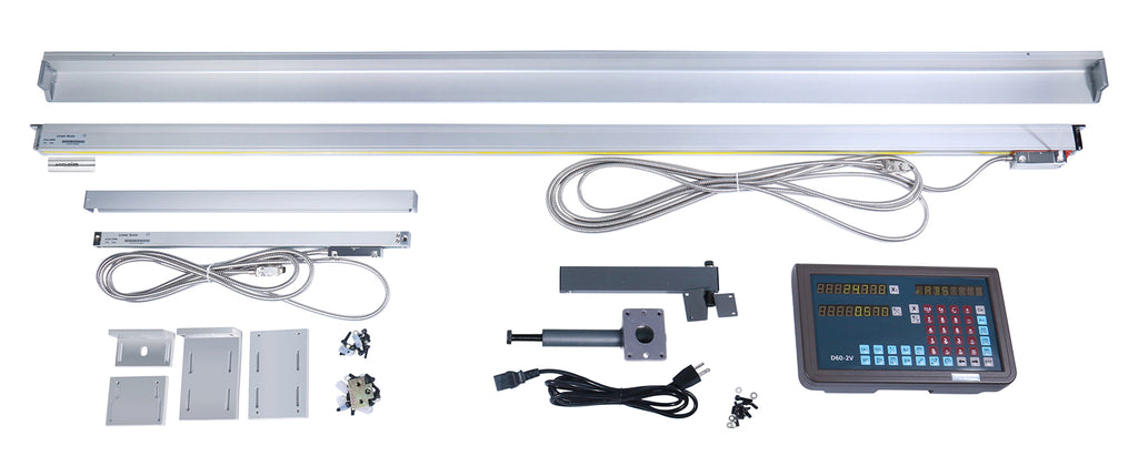 N° d'article Taille Tour Voyage Longueur totale de l'échelle SIN3-2001 12" x 24" 6 po x 30 po 11 po x 35 po SIN3-2002 12"x 36" 8" x 40" 13 po x 45 po SIN3-2003 13"x 40" 8" x 40" 13 po x 45 po SIN3-2004 14"x 40" 10 po x 40 po 15 po x 45 po SIN3-2005 16« x 40" 10 po x 40 po 15 po x 45 po Manuel d'installation de l'échelle linéaire et du système DRO